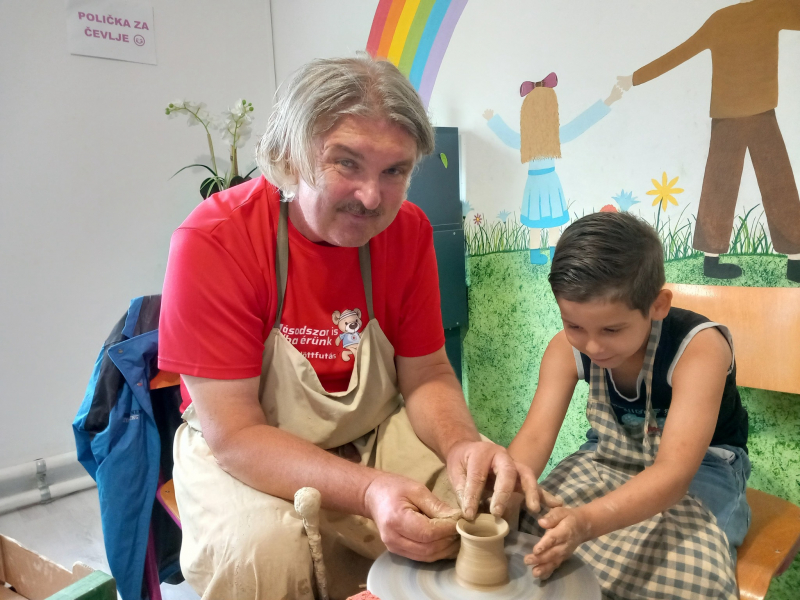 Csaba nemcsak készítője, hanem tanítója is ennek az ősi mesterségnek: rendszeresen tart kézműves foglalkozásokat a zalaegerszegi Göcseji Falumúzeumban. Nyári kézműves táborokban, iskolákban és határon túli, főként muravidéki magyar közösségekben is tanítja a szakma fogásait. A szociális érzékenység jegyében terápiás fazekasfoglalkozásokat is tart fogyatékkal élők számára.